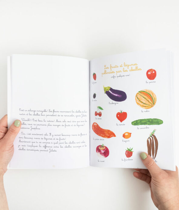 L’abeille est l’héroïne de la première histoire : Juliette, la grande sœur, explique à sa petite sœur Joséphine, l’histoire et la vie des abeilles : qui sont-elles, où vivent-elles, comment elles pollinisent, les fruits et légumes qu’elles contribuent à créer, pourquoi elles sont en danger…et enfin comment aider à les sauver, chacun à son niveau, même avec de tous petits gestes !