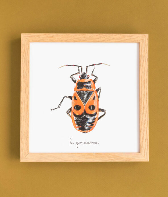 Voici le gendarme, celui qui résiste et persiste à vivre dans les cours des écoles et qui parfois finit sa vie dans une poche de jean d’un enfant trop passionné. Nous l’aimons tellement qu’il est le héros du sixième livre du jardin de Juliette et Joséphine.