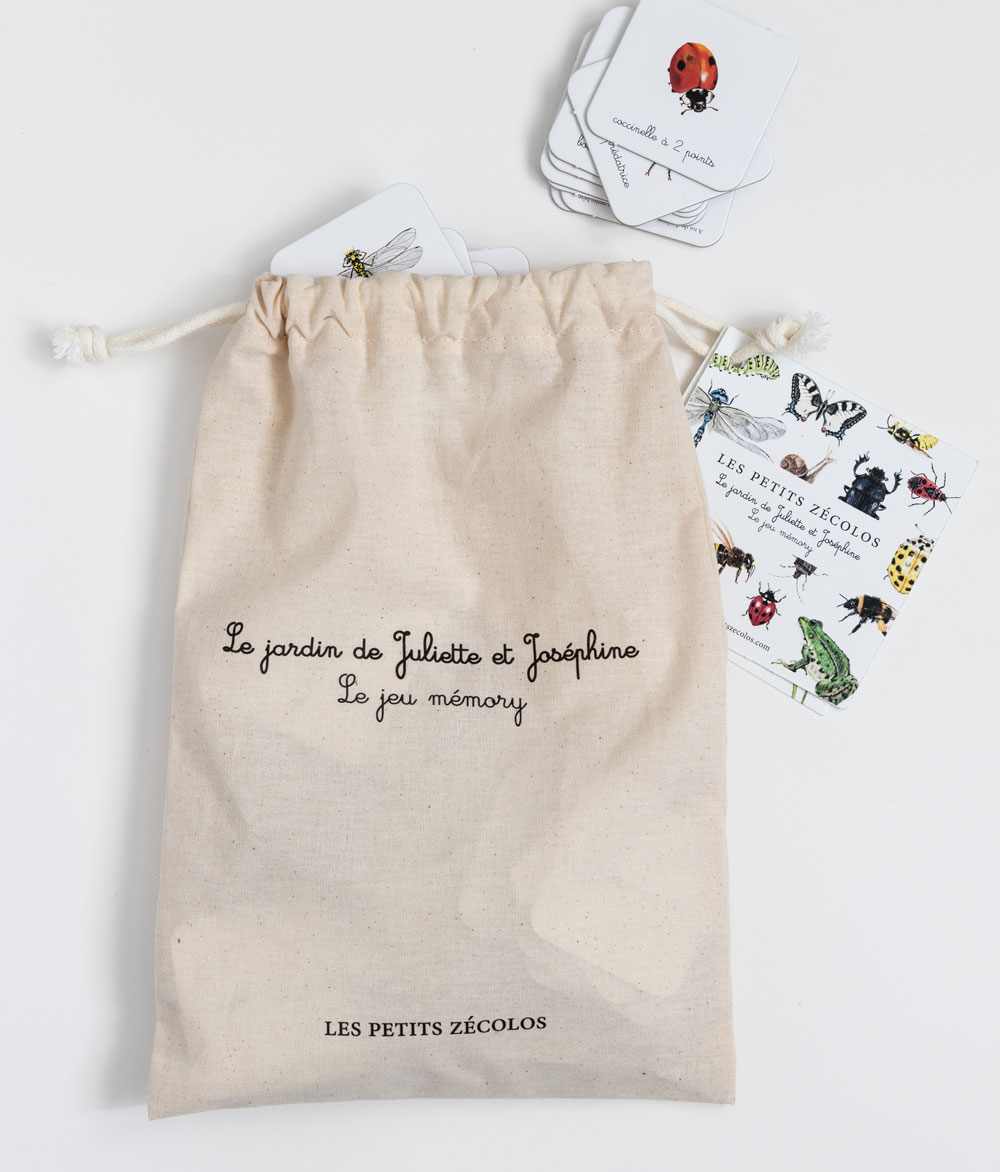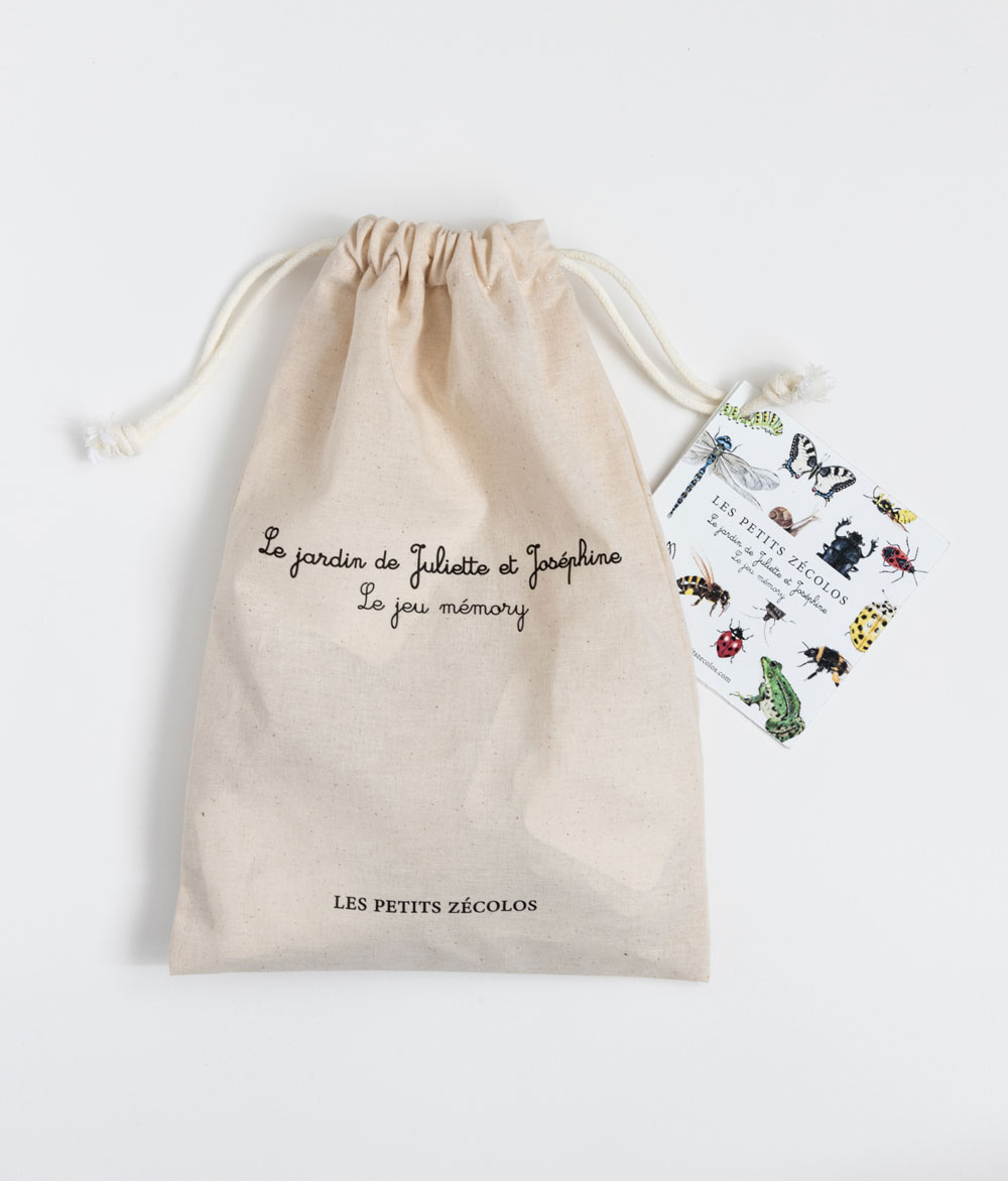 Fabriqué en France, sur du carton et du papier recyclés, ce jeu se range dans un sac, ce qui te permettra de l’emporter partout avec toi, surtout dans le jardin ou lors de tes balades ! Sac en coton bio 100% naturel, certifié okéo-tex, fabriqué à Alicante en Espagne.
